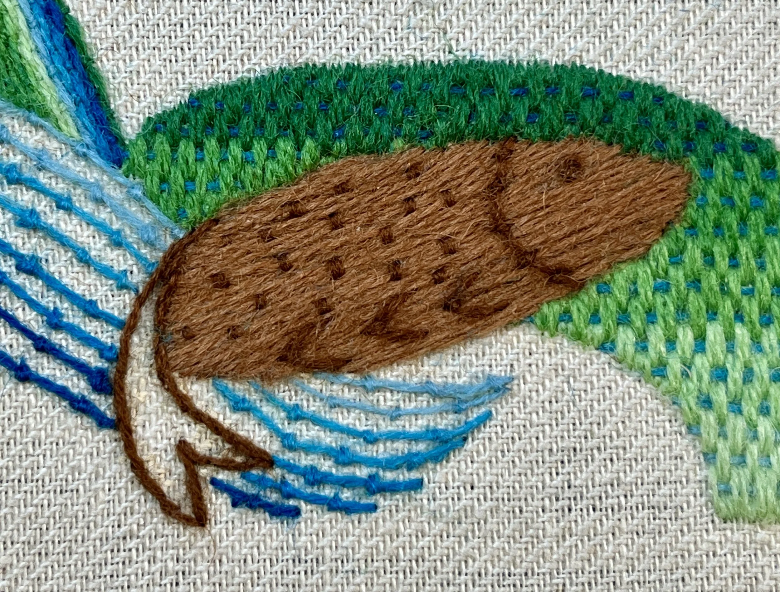From there on out, it was a lot of stitching. At first, I sampled to make sure the stitch plan would be what I wanted. After I started on the final piece, some areas gave me trouble and I had to unpick and restitch them. It was hard to not keep striving for perfection. At a certain point, I had to say, “good enough,” and move on.